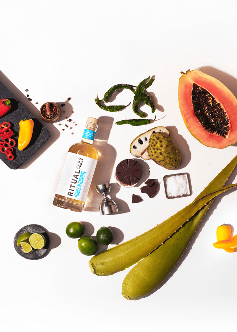 Experience the familiar flavors of the award-winning Ritual Agave Spirit Alternative. Notes of earthy blue agave and a green pepper nose, tempered with a hint of rock salt and backed by a clean burn. Make Margaritas, Palomas, and other classic agave spirit cocktails – without the alcohol. Simply substitute traditional agave spirits with Ritual Agave Spirit Alternative 1:1 to make any cocktail non-alcoholic.