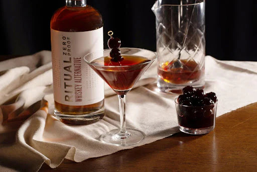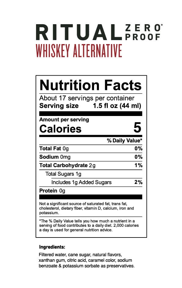 Experience the familiar flavors of the award-winning Ritual Whiskey Alternative. Notes of vanilla, oak, stone fruit and caramel, finishing with a pleasant heat. Make Old Fashioneds, Whiskey Sours, Manhattans and other classic whiskey cocktails – without the alcohol. Simply replace traditional whiskey with Ritual Whiskey Alternative 1:1 to make any cocktail non-alcoholic.